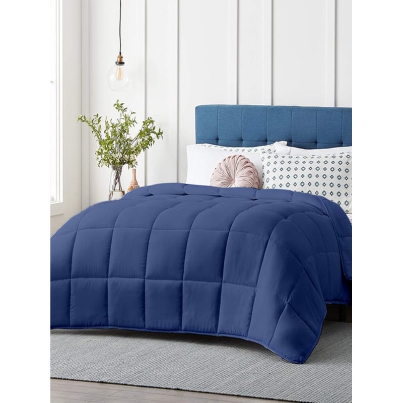 Experience warmth and comfort with the Razzai Navy Poly Fill Basic Comforter. Perfect for any bedroom, its sleek navy color complements various decor styles.Disclaimer: All other items in the image are only for display purposes and will not be a part of th