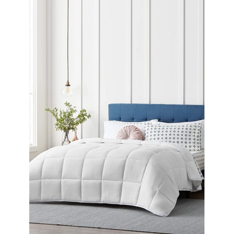 Experience cozy comfort with the Razzai White Poly fill Basic Comforter. Perfect for a serene night's sleep, its soft fabric and classic design enhance any bedroom decor.Disclaimer: All other items in the image are only for display purposes and will not be