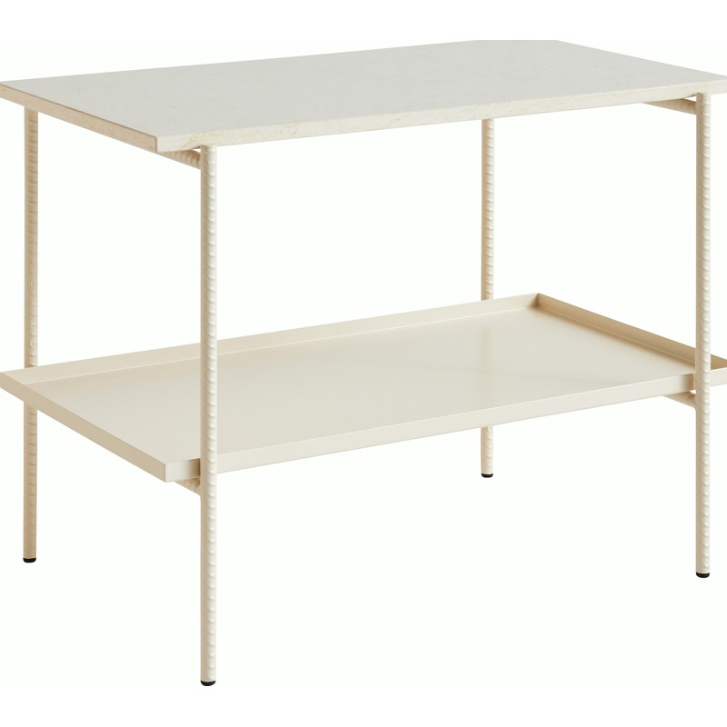 The Rebar collection explores the possibilities of re-contextualizing construction materials and processes. A versatile piece that can be used as a console table for the entryway or as a coffee table for the living room, this two-tiered table features a reinforced steel bar frame, a marble top, and a tray for added storage. Made in China.