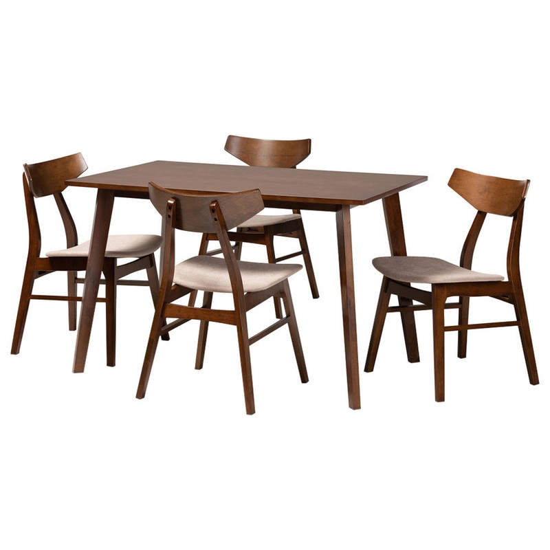 Efficient and streamlined design make the Reedsport dining set an easy addition to any dining space. Made in Malaysia, the Reedsport is crafted from sturdy wood and comfortably seats up to four. Walnut brown finished wood and a rectangular tabletop provide lend modern style while giving each member of the table plenty of elbow room. Assembly is required and each chair is padded with foam underneath a layer of soft fabric for comfort. With its compact size, the Reedsport dining set is an easy addition to dining rooms and nooks with limited space.