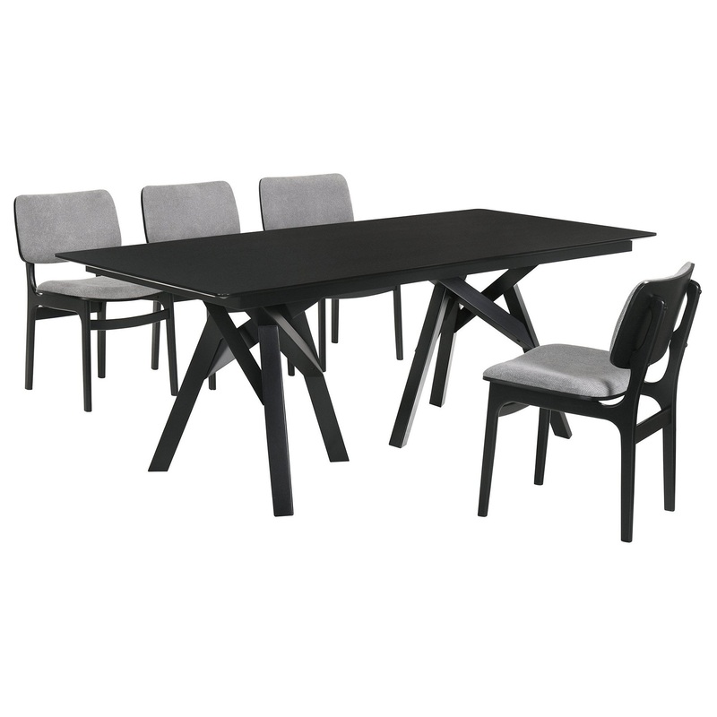 -This mid-century dining set boasts an ideal combination of comfort and style that is certain to make every family gathering relaxing and memorable. -The Black Veneer frame and beautiful top are complemented beautifully by the Lima's stylish grey upholster