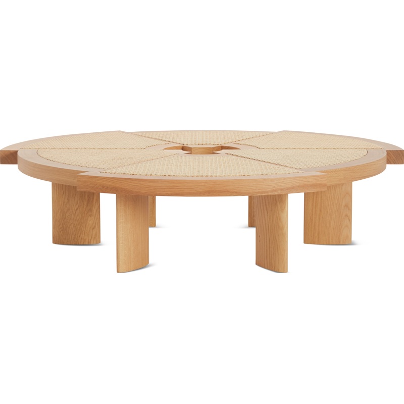 The Rio Low Coffee Table, designed by the late French architect Charlotte Perriand, is prized for its statement-making aesthetic. Originally created for the Japanese Embassy in Paris, it comprises six radial segments arranged in an offset manner, resulting