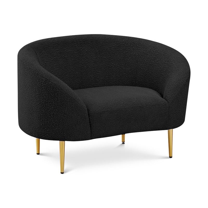 Impress family and guests alike with this Ritz Boucle Fabric Chair. Wrapped in a cozy boucle fabric, this chair exudes elegance and comfort. The gold metal legs add a touch of glamour to the overall design, making it a perfect addition to any modern living space. Sit back, unwind, and sink into the plush cushions of this chic and stylish chair.