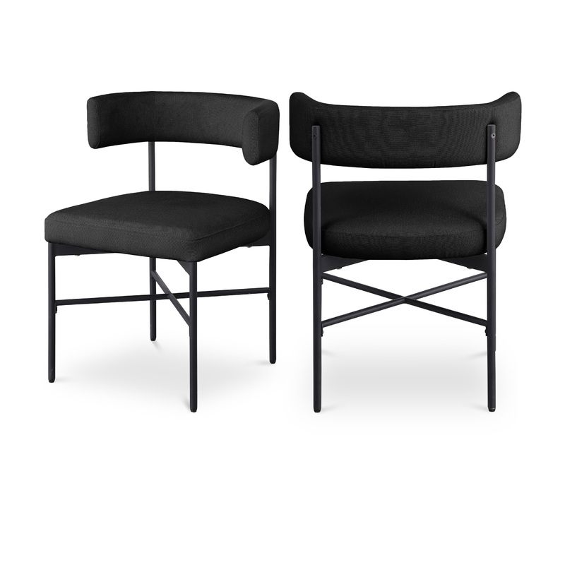 Dine in style when you add this Rivage linen textured fabric dining chair to your space. This lovely chair features rich black durable linen textured fabric upholstery on the curved seat back and seat, giving your space an elegant and refined feel. An all-metal frame adds a durable slant to the design while a matte black finish gives the chair just a hint of refinement and sophistication.