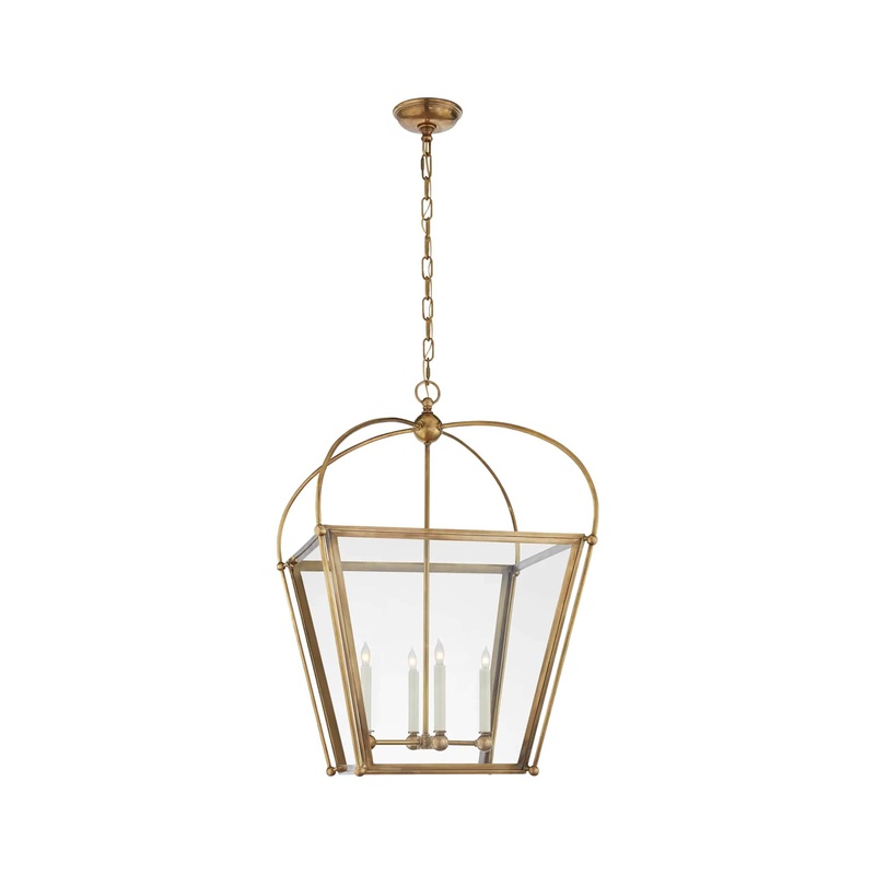 The Riverside Medium Square Lantern features a dramatic but classic appearance, offering a fresh take on a timeless silhouette. This fixture boasts exaggerated arching lines that contrast with the angular, cage-like frame, candle-inspired lights and understated clear glass panels.TheRiversideMedium Square Lantern is part of the Chapman & Myers collection.