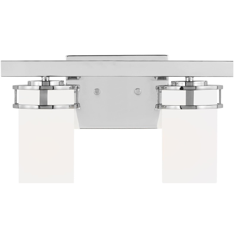Features: Constructed from steel Comes with frosted glass shades Includes (2) medium (E26) 9 watt LED bulbs Capable of being dimmed Rated for installation in damp locations Dimensions: Height: 8-1/8″ Width: 14-5/8″ Extension: 6-3/4″ Product Weight: 2.64 lbs Electrical Specifications: Max Wattage: 18 watts Number of Bulbs: 2 Watts Per Bulb: 9 watts Lumens: 800 Bulb Base: Medium (E26) Bulb Type: LED Color Temperature: 3000K Color Rendering Index: 90 CRI Voltage: 120 volts Bulbs Included: Yes