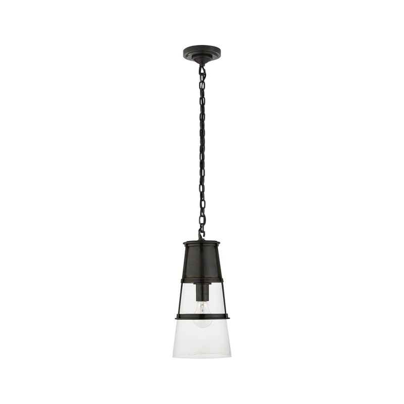 The Robinson Medium Pendant is timeless piece sure to be a showstopper in your home.This fixture is ideal to compliment any stylishspace with its sleek yet functional design. Hang the Robinson pendant alone or pair in groups to achieve the desired lighting effect in any room.Available in your choice of numerous metal and glass finishes.The RobinsonMedium Pendant is part of the Thomas O’Brien collection.