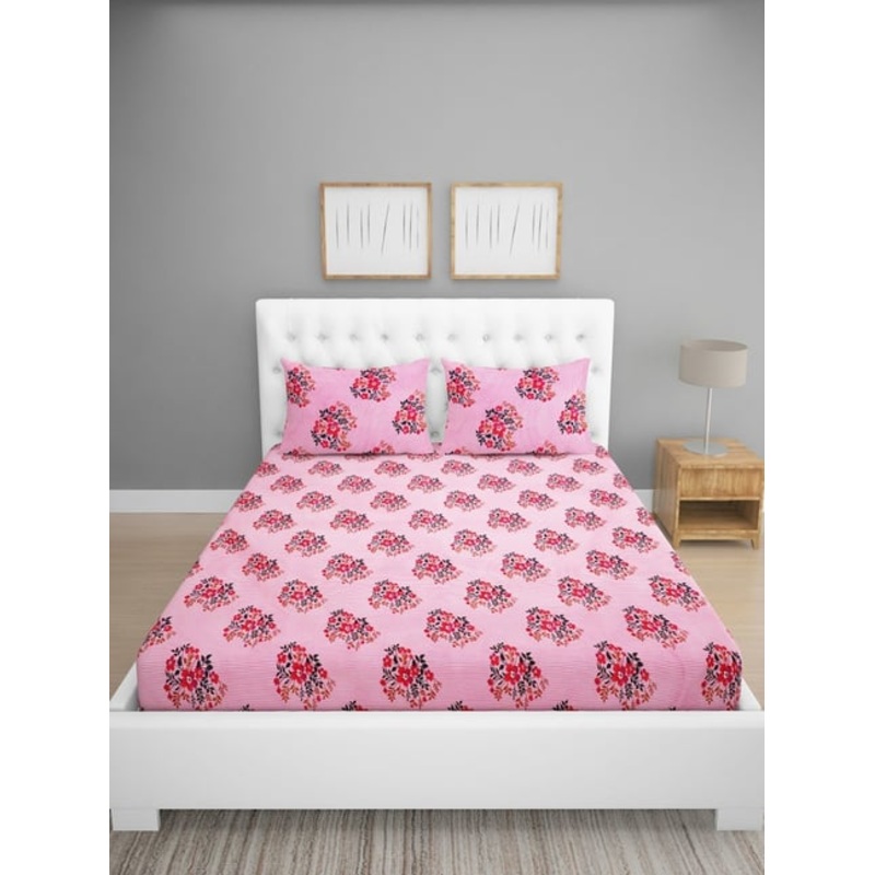 Enhance the beauty of your bedroom with this queen-sized bed sheet set from Romee. The set includes 1 bedsheet and 2 pillow covers. The pattern soothes your eyes and the soft touch of this bed sheet will help you in getting a pleasant sleep. It has been crafted from cotton with a thread count of 144 TC.