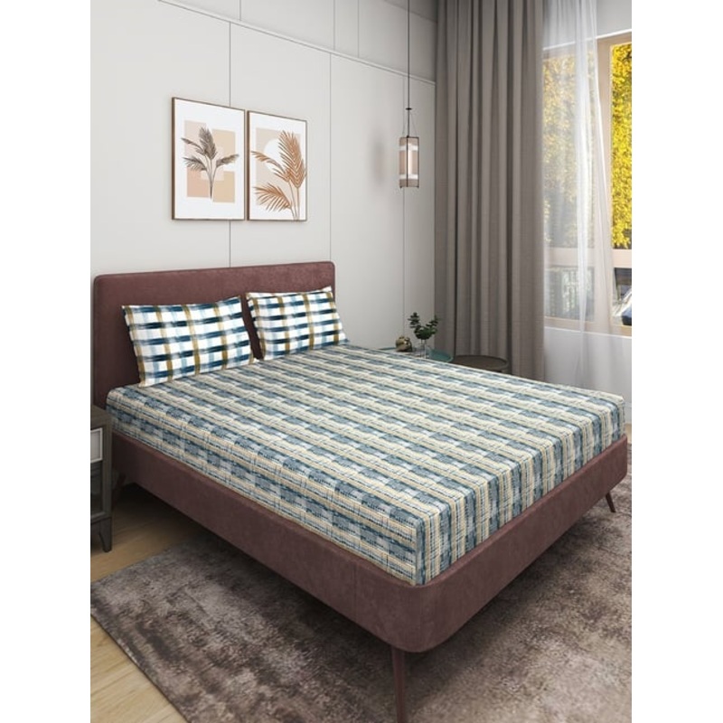 GR4670180092Romee Blue Cotton Abstract Bed Sheets