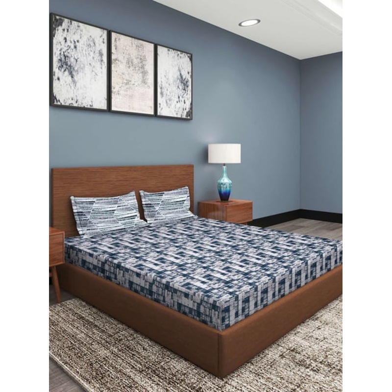 GR4670179485Romee Blue Cotton Geometric Bed Sheets