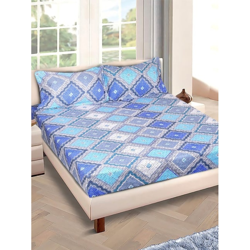 GR4670179793Romee Blue Microfibre Geometric Bed Sheets