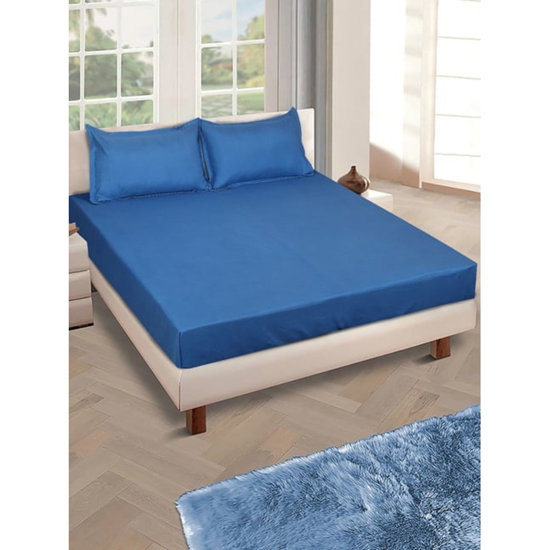 GR4670178441Romee Blue Microfibre Solid Bed Sheets