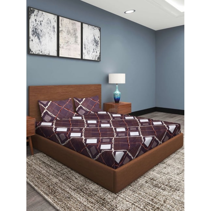 GR4670179993Romee Brown Cotton Geometric Bed Sheets