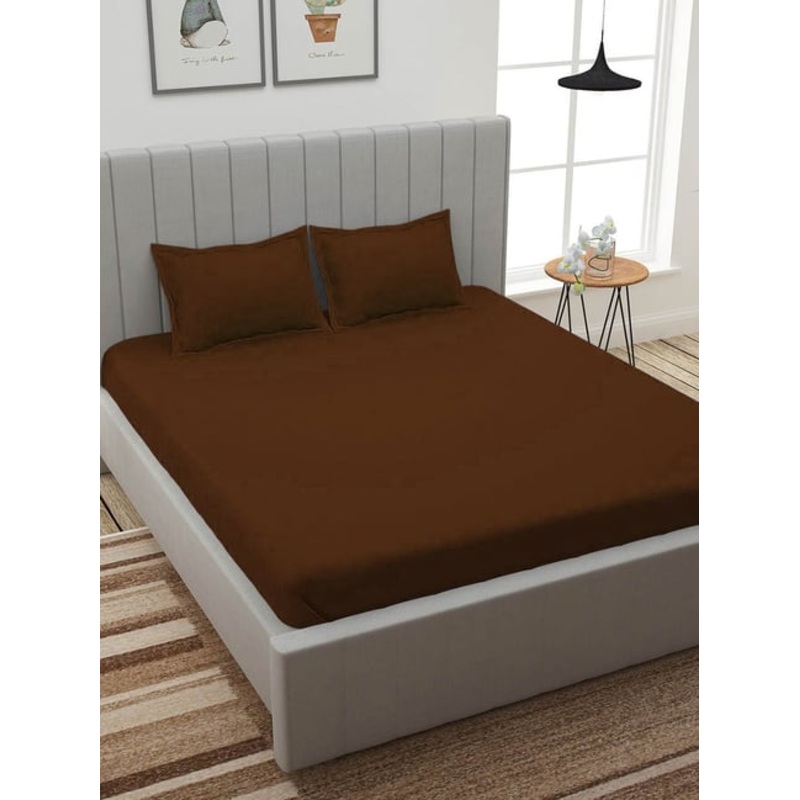Romee Coffee Brown Polyester Solid Bed Sheets