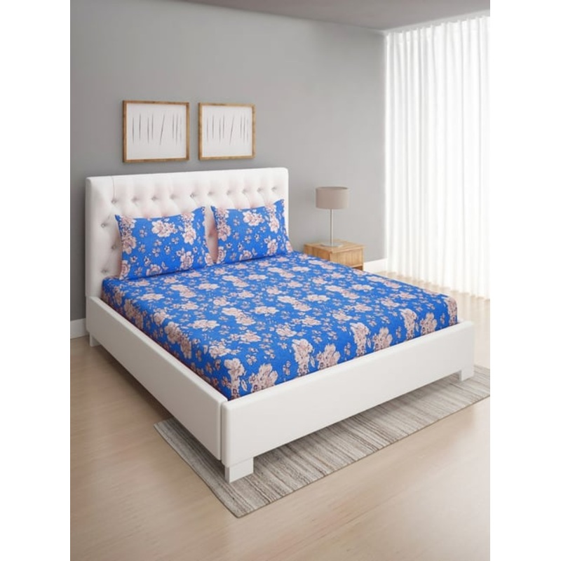 Enhance the beauty of your bedroom with this queen-sized bed sheet set from Romee. The set includes 1 bedsheet and 2 pillow covers. The pattern soothes your eyes and the soft touch of this bed sheet will help you in getting a pleasant sleep. It has been crafted from cotton with a thread count of 144 TC.