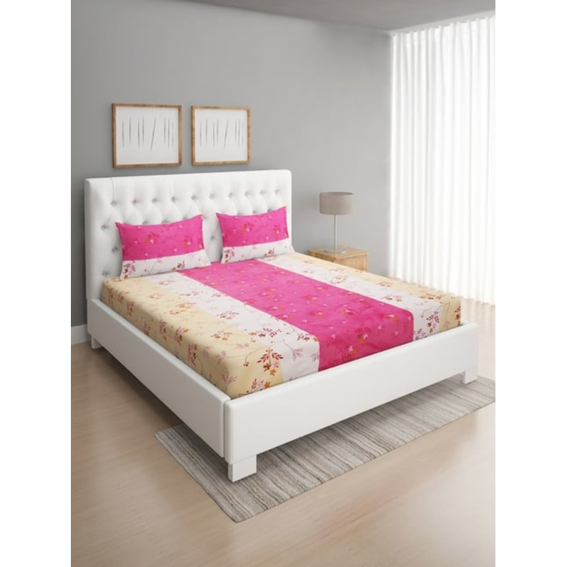 Romee Floral Pink & Beige 144 TC Cotton Queen Sized Bed Sheet with 2 Pillow Covers