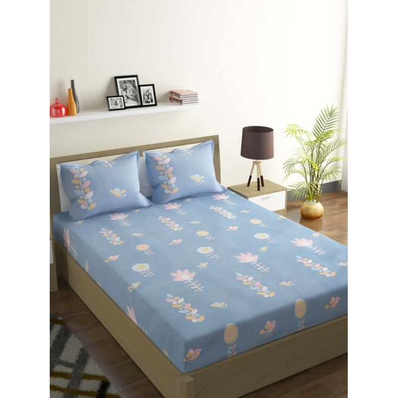 Enhance the beauty of your bedroom interiors with this queen-sized bed sheet set from the house of Romee. It is durably crafted with cotton with a thread count of 144. This set comes with a floral pattern which soothes your eyes and the soft touch will help you in getting a pleasant sleep. It gives a graceful and modern look to any bedroom. It retains its vibrant color, providing the needed charm to complete any bedroom which lasts a lifetime. It comes in a set of 1 bed sheet and 2 pillow covers.
