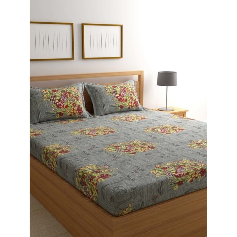 Enhance the beauty of your bedroom interiors with this queen-sized bed sheet set from the house of Romee. It is durably crafted with cotton with a thread count of 144. This set comes with a floral pattern which soothes your eyes and the soft touch will help you in getting a pleasant sleep. It gives a graceful and modern look to any bedroom. It retains its vibrant color, providing the needed charm to complete any bedroom which lasts a lifetime. It comes in a set of 1 bed sheet and 2 pillow covers.