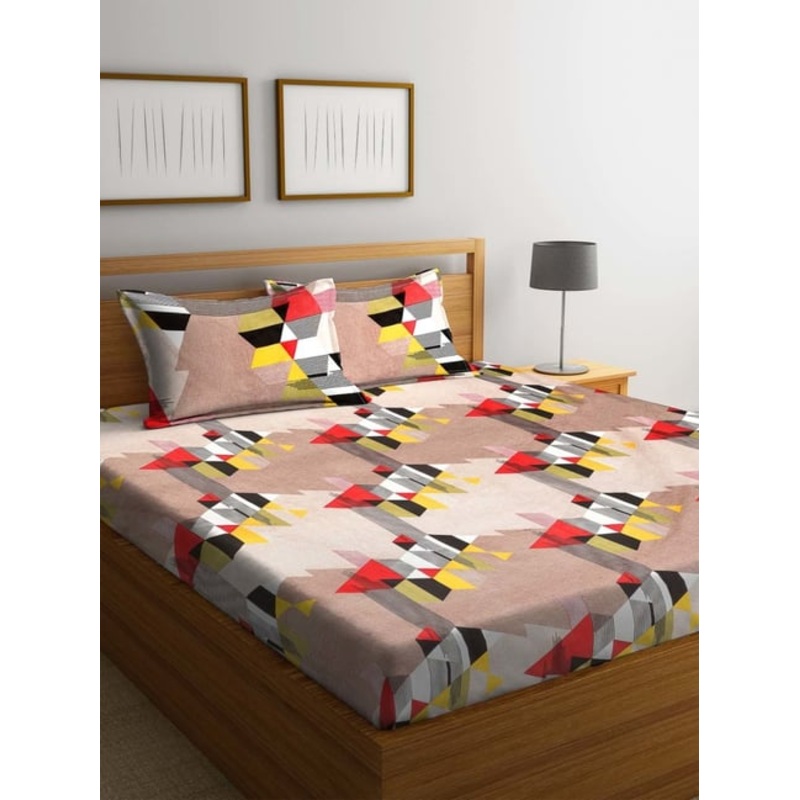 Enhance the beauty of your bedroom interiors with this queen-sized bed sheet set from the house of Romee. It is durably crafted with cotton with a thread count of 144. This set comes with a geometric pattern which soothes your eyes and the soft touch will help you in getting a pleasant sleep. It gives a graceful and modern look to any bedroom. It retains its vibrant color, providing the needed charm to complete any bedroom which lasts a lifetime. It comes in a set of 1 bed sheet and 2 pillow covers.