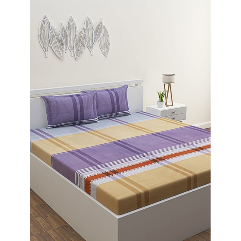 GR4670179877Romee Purple Microfibre Geometric Bed Sheets