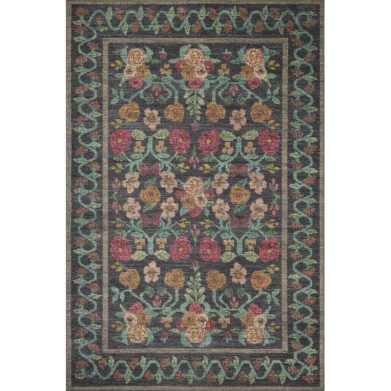 The Rosa Collection by Rifle Paper Co. x Loloi is a power-loomed area rug that takes inspiration from folk art floral textiles with a signature Rifle style. Floral motifs anchor the center of the rug, which is framed with a lovely border for the final touc