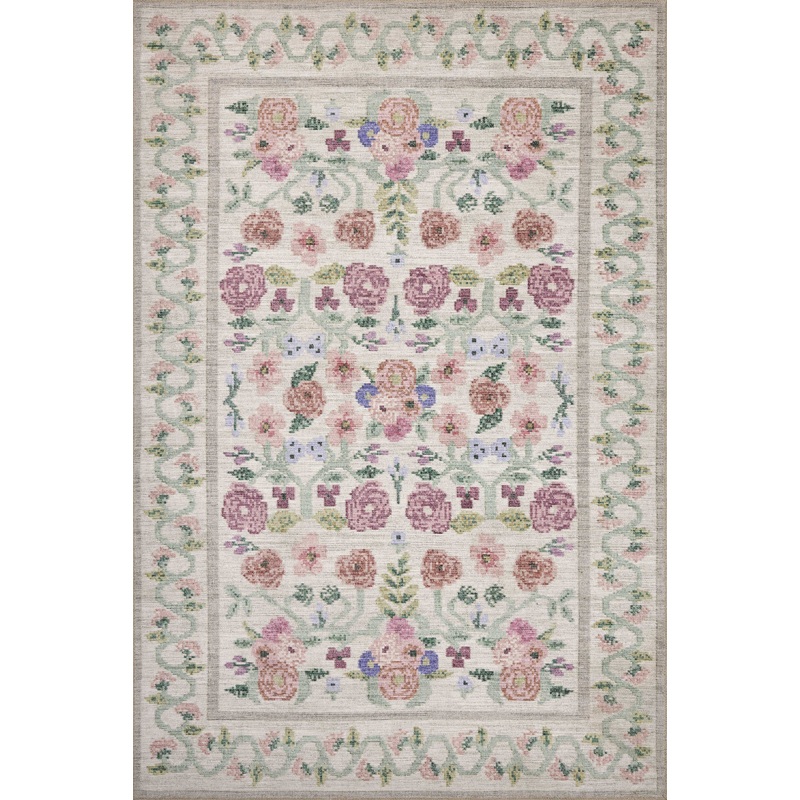 The Rosa Collection by Rifle Paper Co. x Loloi is a power-loomed area rug that takes inspiration from folk art floral textiles with a signature Rifle style. Floral motifs anchor the center of the rug, which is framed with a lovely border for the final touc