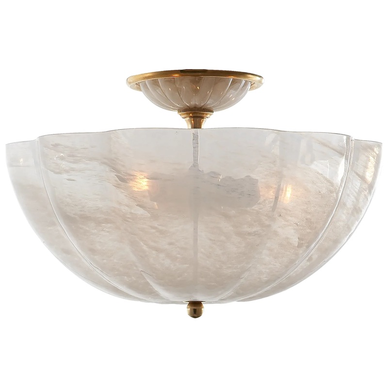 The Rosehill Semi-Flush sports anelegant design featuring a softly scalloped white strie glass bowl (with a balled metal finial) which houses a series of internal lamps. Once on, light filters through the bowl as though underwater, offering an alluring distorted display that contrasts well with the fixtures refined aesthetic. This design is supported by a decorative canopy. TheRosehill Semi-Flush is part of the AERIN collection.