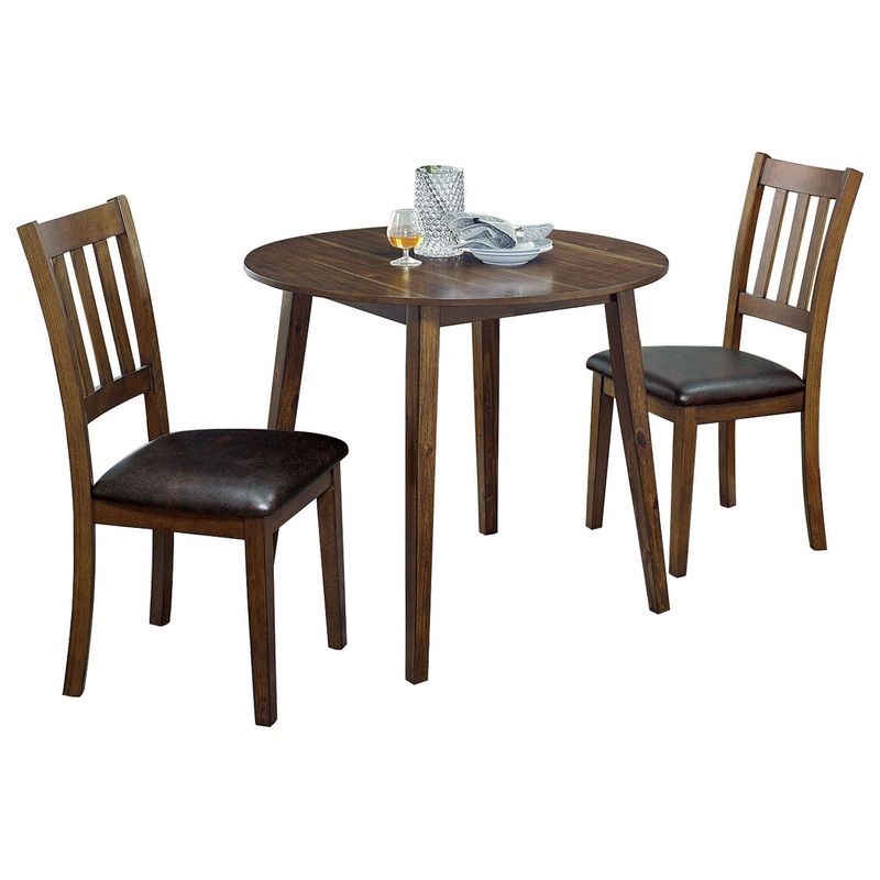 This traditional dining table set consists of a solid wood round table and two chairs. This set is made of rich walnut wood to deepen and enhance its matching wood grain pattern. The chair is designed with a curved wooden ladder backrest, and the comfortable round table top can effectively use the limited space. What a very practical dining set!