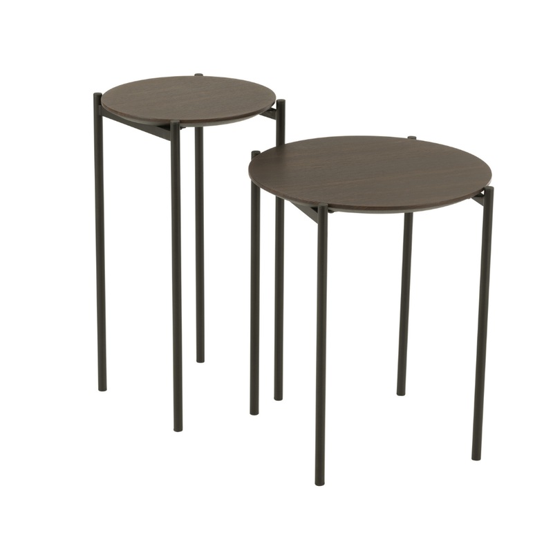Fedezd fel a Round lerakasztal szettet, amely modern s elegns megjelensvel tkletes kiegsztje lehet brmely otthonnak. A kszlet kt klnbz mret asztalt tartalmaz, melyek praktikusak s sokoldalak, gy idelisak akr nappaliba, hlszobba vagy irodba.A sttbarna fa asztallap elegns s idtll megjelenst klcsnz, mg a fekete fm lbak stabilitst s tartssgot biztostanak.