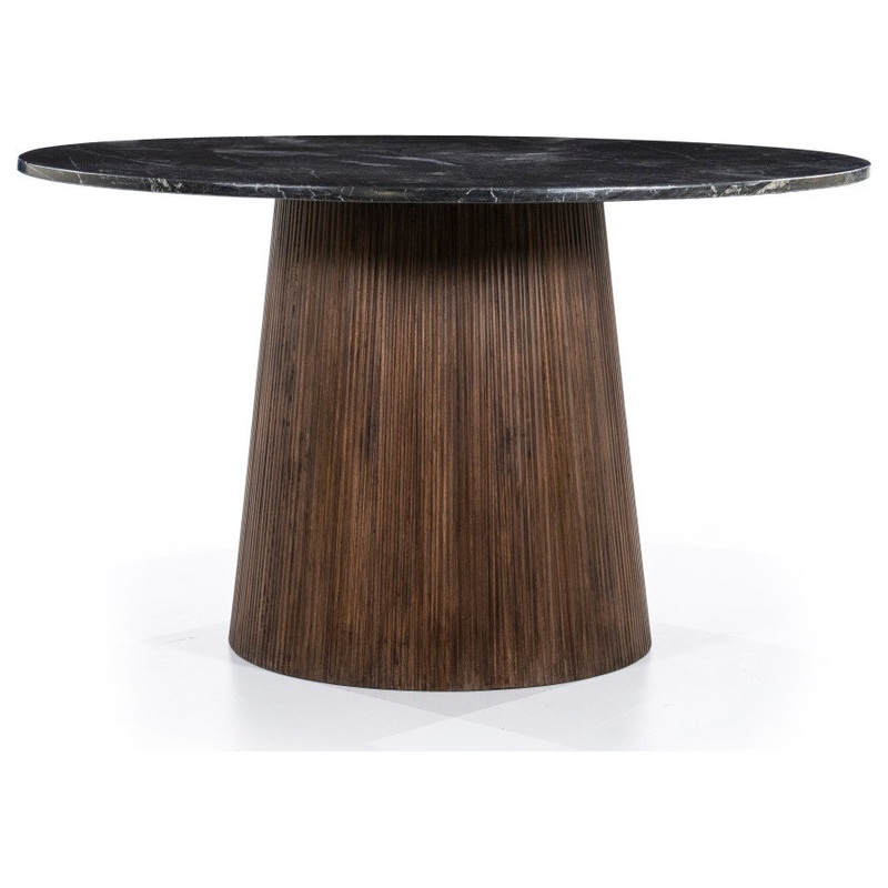 Maxim dining table by Eleonora carries with it such a fine charm. With a circular black marble top and mango wood pedestal base, this piece is a stylish and functional item to add to your home. -W51 x D51 x H30 in | Weight 225lbs -Table top | Marble -Base