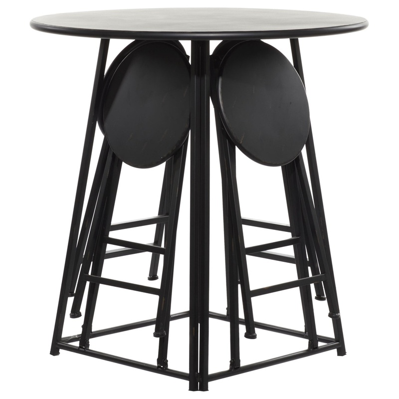 -Designed with a rustic theme influence for cozy and organic feel -Item crafted of a solid metal -Designed with a minimalist gray finishing. -Features a round dining table with four chairs. -Each item measures 71.50L x 71.50W x 36.38H and weighs 49.5 lbs.P