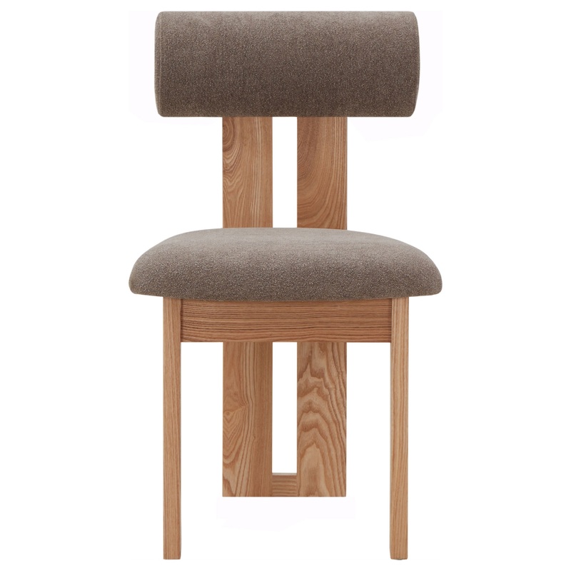 Make a stylish impact with the eye-catching elegance of our Halloway dining chair. The bold and striking profile of our chair is accentuated with soft playful shapes. An eye-catching round bolster supports you in just the rich places. Its plush and rounded upholstery creates a stunning contrast with the slim and refined ash wood frame. Upholstered in boucle in a graceful brown hue, our dining chair adds a dose of style and interest to any home. Its generous padding and rich upholstery promise a comfortable stay in your kitchen, dining, or living space.