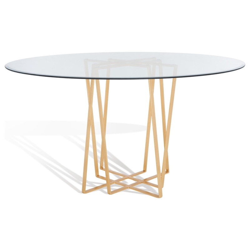 A dazzling work of modern art for today's high-fashion interiors, this Scotty Dining Table is a knockout. Scotty's illusionary gold base flaunts a dramatic sense of depth and motion that creates a decoratively hypnotic display, making it a designer must-ha