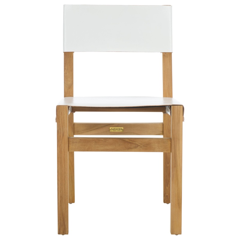 Bring Modern Flair And Charm To Your Space With Our Romee Dining Chair. Our Chic And Clean-Lined Chair Offers Great Functionality And Durability. The Boxy Frame Of The Chair Is Crafted From Teak For A Sleek And Rustic Appeal. It Features A Sling-Style Leather Seat And Back To Effortlessly Contour Your Body And Offer A Comfortable Sit. Showcasing A Rich White Hue, Our Dining Chair Brings Warmth And Everyday Elegance To Your Mealtime. It Can Serve As A Chic And Comfy Addition To Your Kitchen, Dining, Or Living Space.