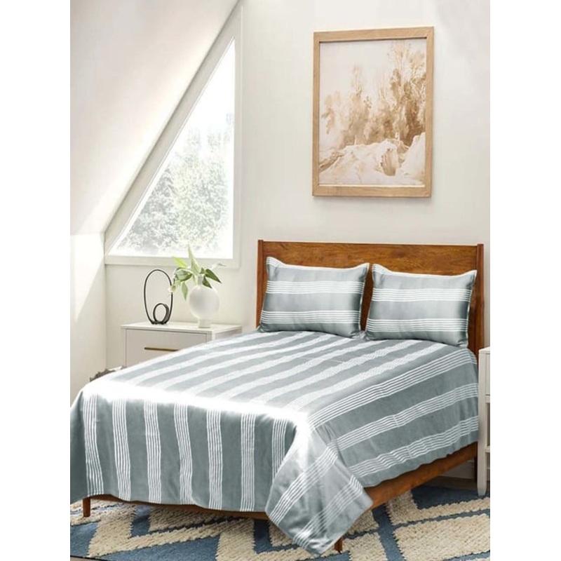 Saral Home Dhari Stripe Print Cotton Queen Bedsheet & 2 Pillow Covers (Grey,90