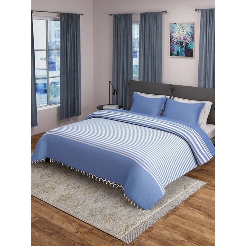 Saral Home Even Striped Cotton Queen Bedsheet & 2 Pillow Covers (Blue,90