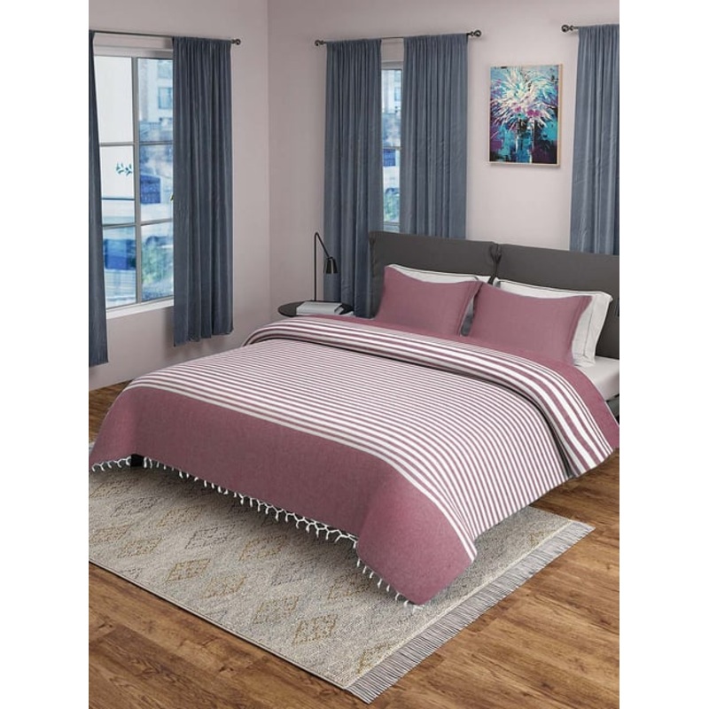 Elegant and attractive, this maroon double size bedsheet set from Saral Home will hug the bed perfectly. Exuding a striped pattern, this set comprises 1 bedsheet and 2 pillow covers that will add class to your room. This set is crafted from cotton will be