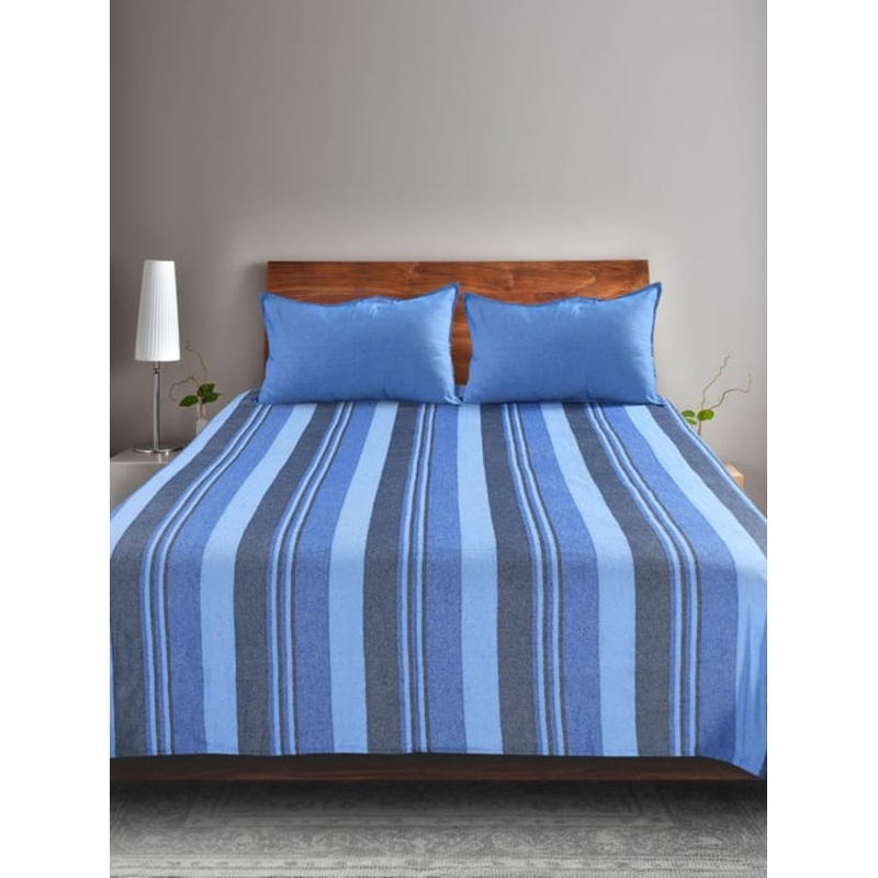 Saral Home Joy Striped Cotton King Bedsheet & 2 Pillow Covers (Blue,100