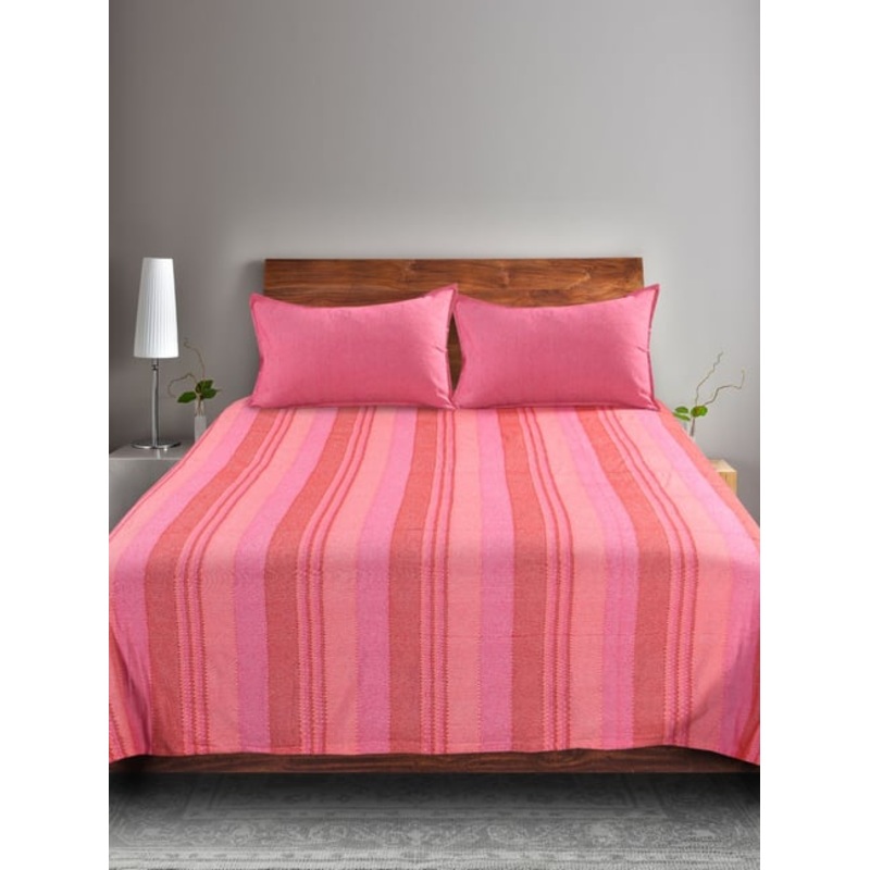 Saral Home Joy Striped Cotton King Bedsheet & 2 Pillow Covers (Pink,100