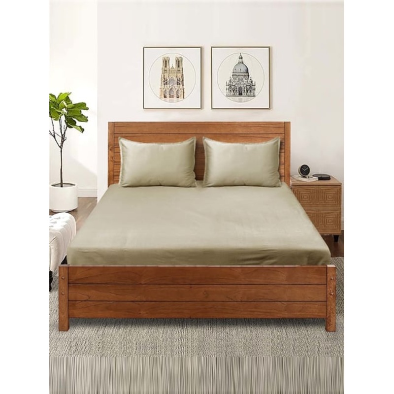 Saral Home Sheen Shine Solid Cotton Queen Bedsheet & 2 Pillow Covers (Beige,90