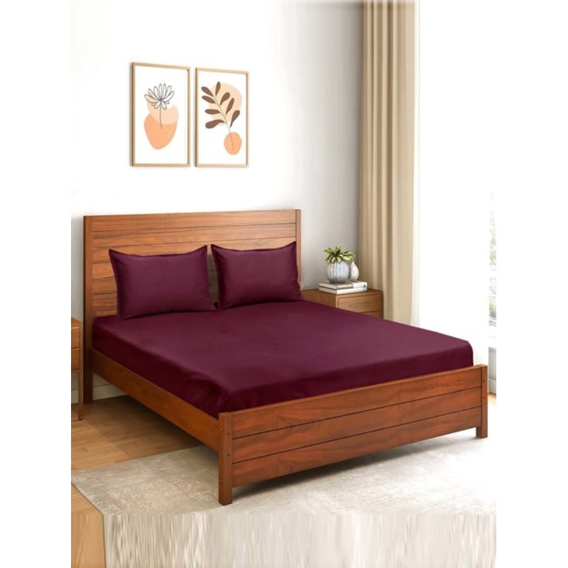 Enrich your bedding experience with this set of 1 queen bedsheet and 2 pillow covers from Saral Home Easy Living. Crafted with high-quality woven cotton and a thread count of 300 TC, it promises luxurious comfort and durability for a restful night's sleep.