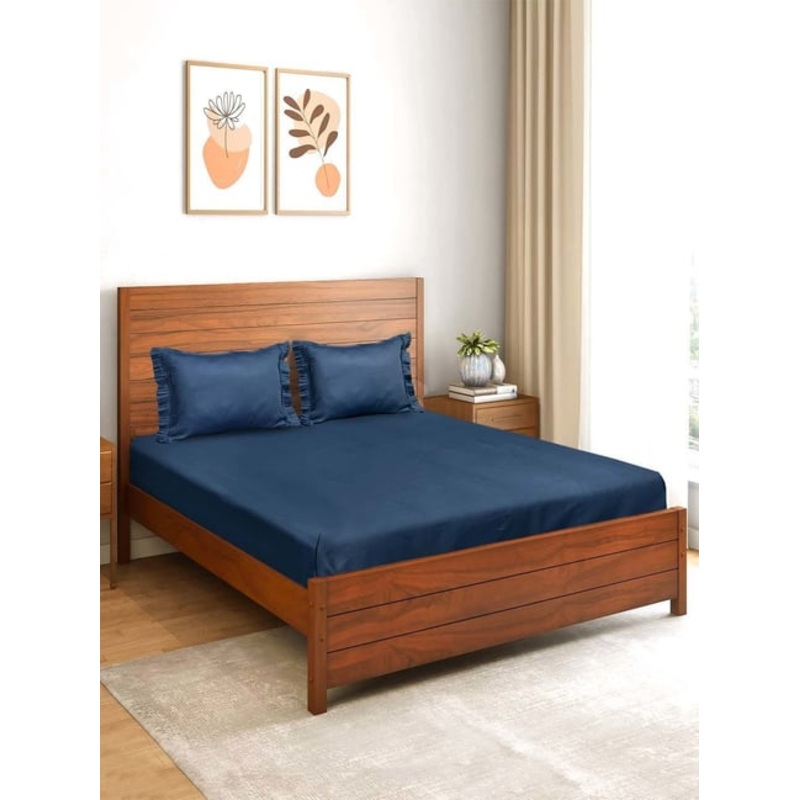 Saral Home Solid Cotton Queen Bedsheet & 2 Pillow Covers (Blue,90