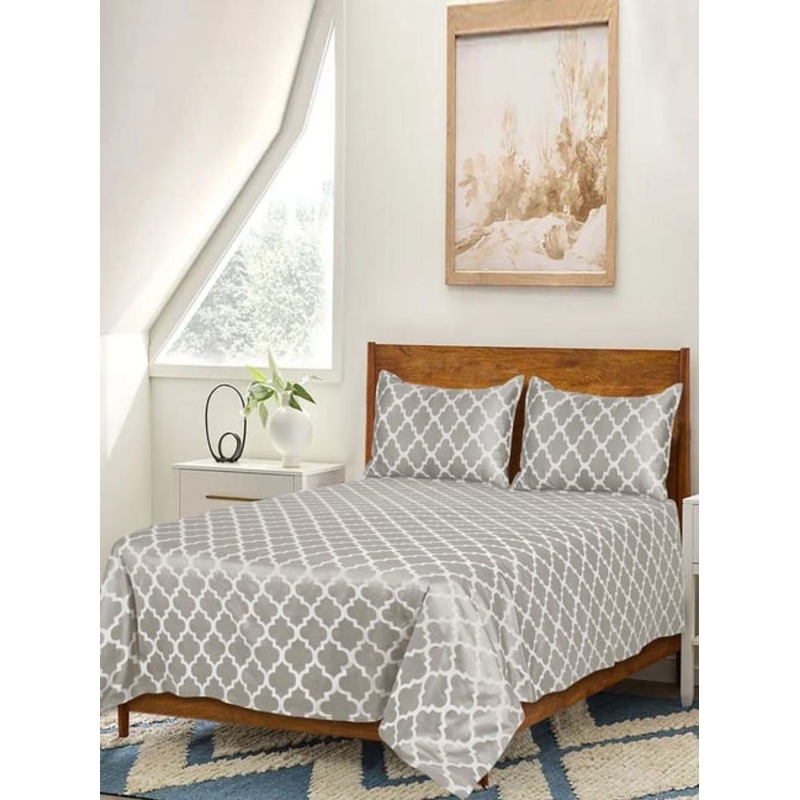 Upgrade your sleep environment with this set of 1 Tangier soft self pattern bed sheet and 2 pillow covers from Saral Home Easy Living. Meticulously crafted with high-quality cotton, the modern design effortlessly introduces a contemporary aesthetic, enrich