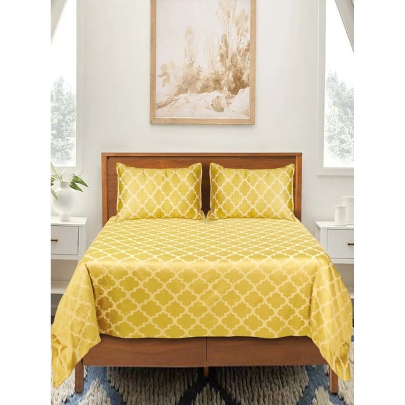 Heighten the coziness factor with this set of 1 Tangier soft self pattern bed sheet and 2 pillow covers from Saral Home Easy Living. Meticulously crafted with high-quality cotton, the modern design effortlessly introduces a contemporary aesthetic, enriching the overall atmosphere of your space. Indulge in the luxury of superior and thoughtful design, creating an amazing experience in the comfort of your own home.