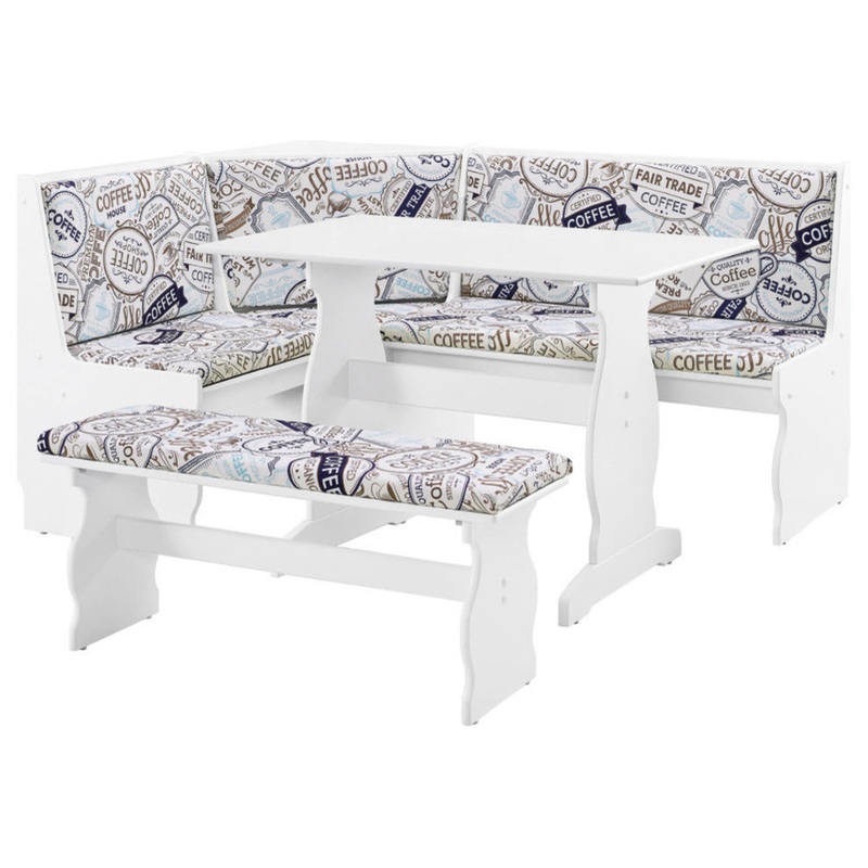 Our Sasha Coffee Nook is the perfect blend of modern and traditional style. Create a cozy spot in any corner of your kitchen perfect for meals and conversation, with this space saving design. This nook provides just the right amount of space and function, making it an ideal family gathering piece. Easily fit five people comfortably around it. The set is completed by a white wood finish with fabric upholstered seats.