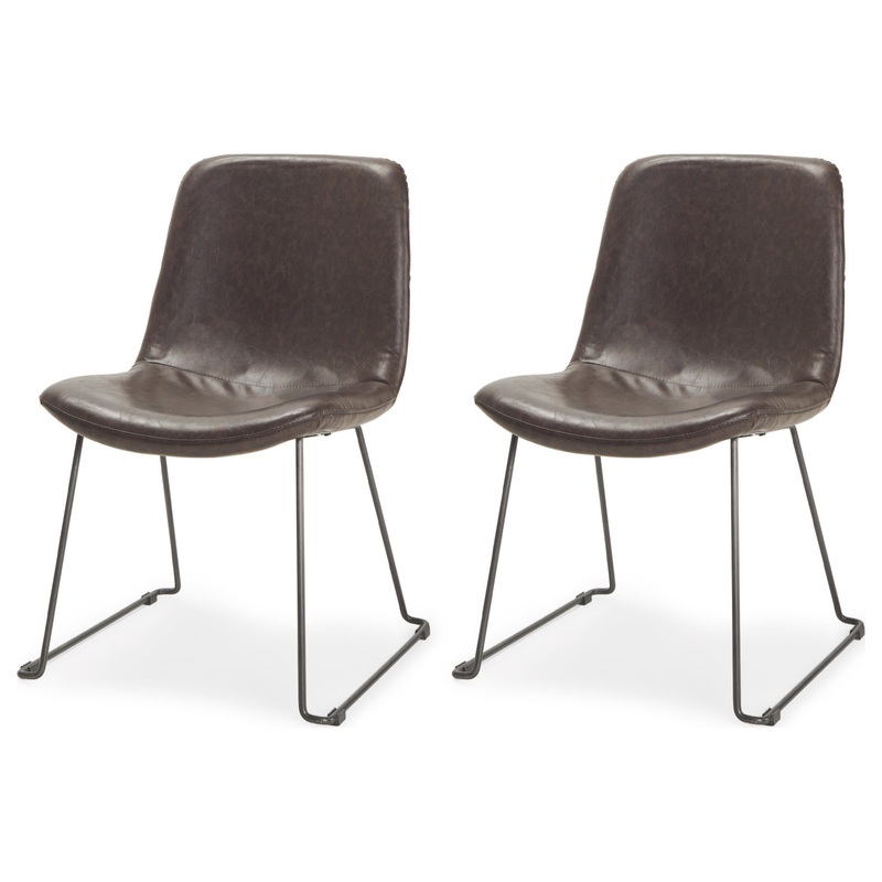 The Sawyer I is a stunning side chair featuring a perfectly padded, dark brown faux-leather seat that is braced by a sleek metal frame. The pipe-style frame, made from matte-black polished iron, provides stability and sturdiness, guaranteeing a pleasant and comfortable dining experience. The Sawyer I is simple, yet stylish and looks great with almost any dining table, especially in spaces based on the Mercana Modern and Industrial design styles. (Sold as a Pair)