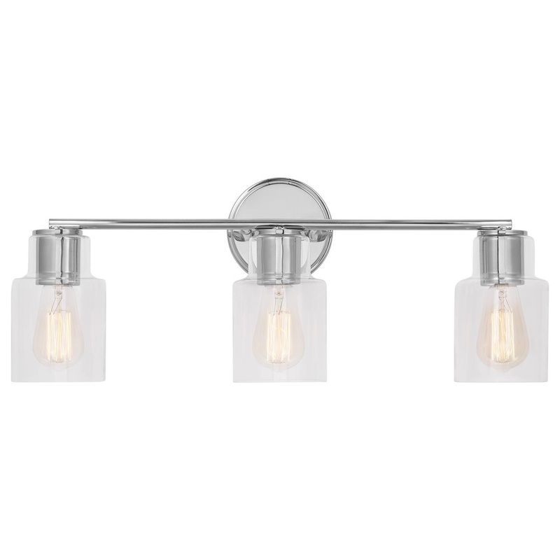 -Uses (3) 60-watt medium base light bulbs sold separately; LED compatibleMade to coordinate across a broader range of bath hardware and design styles, this light adds bright light where you need it most with its clear glass shade and classic metal backplate in striking, modern finishes