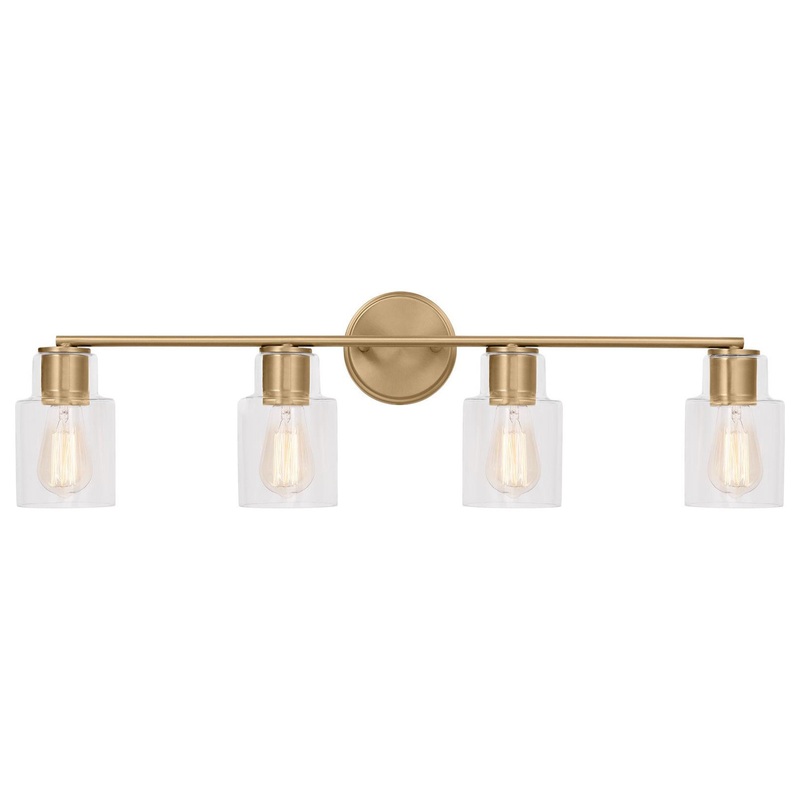-Uses (4) 60-watt medium base light bulbs sold separately; LED compatibleMade to coordinate across a broader range of bath hardware and design styles, this light adds bright light where you need it most with its clear glass shade and classic metal backplate in striking, modern finishes