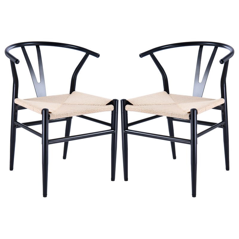 Recline in comfort and style with our Scandi-Style Wishbone Metal Chairs Set of 2! Their sculptural bent frame wraps around you in support while the rope-woven seat adds a striking textural contrast. Inspired by the simple elegance of mid-century Danish de
