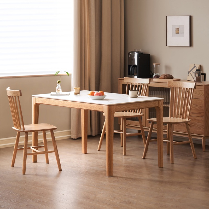 Scandinavian Oak Wood Sintered Stone Dining Table OAKLIN